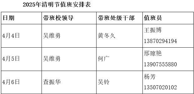 根据《国务院办公厅关于2025年部分节假日安排的通知》(国办发明电〔2024〕12号)精神,结合学校实际,现将清明节放假安排通知如下: