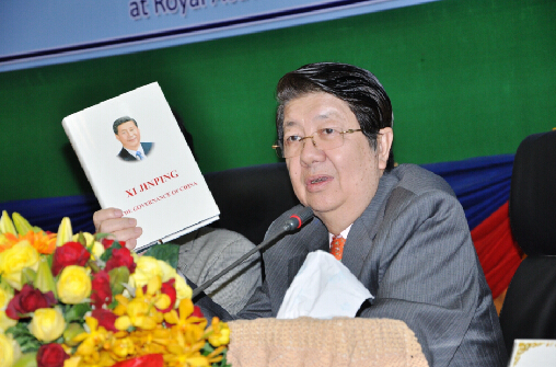 布建国大使在研讨会上表示,《习近平谈治国理政》一书全面系统地回答了新的时代条件下中国发展的重大理论和现实问题,同时集中展示了中国领导人的治国理念和执政方略,是国际社会了解当代中国的重要窗口和寻找中国问题答案的一把钥匙。布建国表示,习近平主席的重要论述,全面准确地反映了他的哲学观、为政观、改革观、历史观和国际观,展现了他治国理政的主要思路和风格。其中许多重要观点,包括关于改革、发展和稳定的关系,政治、经济和社会改革的关系,中央和地方的关系,内政与外交的关系等,对于外界了解中国发展的大势,了解中国道路和中国理念都极具参考价值,她很期待此书柬文版的出版发行。她强调,在外交上,中国非常重视与周边外交工作,始终坚持亲、诚、惠、容的周边外交理念,坚持共同建设“一带一路”。