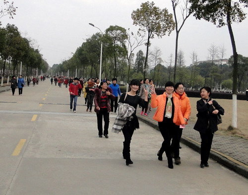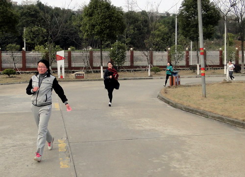 下午16时,第七届庆祝“三八”妇女节校园环跑活动开始。校工会主席金葆金作了简短讲话,向大家表示节日的问候,祝愿大家在本次环校跑活动中,取得优异成绩。随着金葆金的一声令下,只见女教工们犹如离弦之箭飞奔出去,她们反应敏捷,起跑干净利落。大家从体育训练馆出发,途经学生红楼宿舍、厚德楼、逸夫图书馆、拓展训练基地、两南山、室内田径馆、紫阳北路,最后到达校园西大门,总赛程约3000余米。