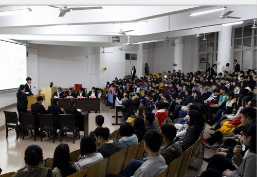 3月24日晚七点,我校第十二届“校园杯”大学生辩论赛启动仪式暨抽签分组在竞知楼阶梯教室举行。校辩论赛对指导老师学位办黄伟、文传学院梅文斌、校团委谭翊泉等老师到场指导辩论赛,交流往届辩论赛工作经验。全校辩论爱好者共计200余人参加了活动。