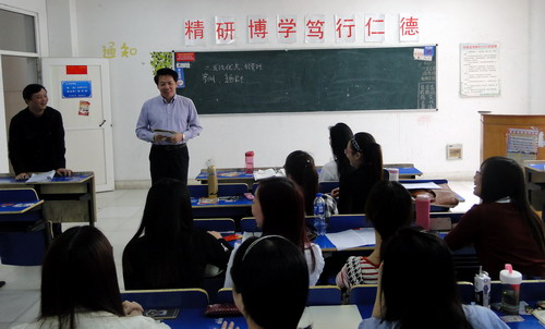 4月1日上午,校党委书记郑翔来到香远楼310教室,同外国语学院A1293班同学一起听了罗小强副教授讲授的《班主任工作(英语教育专业)》课程。教务处处长马明亮,外国语学院副院长柴克清一同听课。