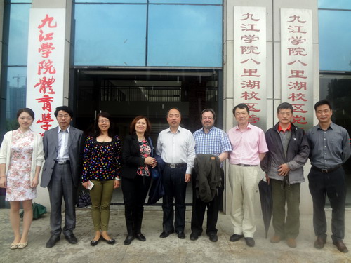 5月14日上午,甘筱青校长陪同法国普瓦提埃大学客人参观了八里湖校区。八里湖校区管理办公室、体育学院、政法学院相关领导及工作人员陪同参观。