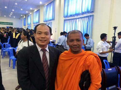 5月11日,柬埔寨亚欧大学举行2015年度毕业典礼,柬埔寨政府洪森总理(H. E. HUN SEN)发表演讲并亲自为毕业生代表颁发毕业证书。