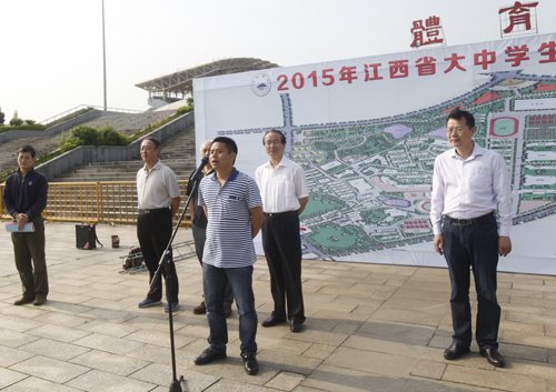 江西省学生体协秘书长揭宁元在致辞中,代表主办方向九江学院为本届比赛给予的强有力的支持表示衷心的感谢。向多年来给予江西定向越野运动大力支持、做出重要贡献的单位和个人表示衷心的感谢。他指出,定向越野既是一项智力测试,又是体能的竞赛,相信同学们经过系统的培训,今天能一展雄风,争取最好的成绩。
