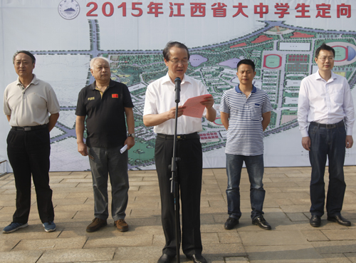 首夏犹清和,芳草亦未歇。在阳光明媚的初夏时节,在风景如画的八里湖畔,2015年江西省“大中学生定向运动”锦标赛在我校隆重举行。5月21日上午,本届锦标赛开幕式在我校八里湖校区隆重举行。九江学院副校长陶春元、江西省学生体协秘书长揭宁元出席开幕式并致辞,江西省学生体协副秘书长刘建军,总裁判长、江西农业大学军体部副主任席艳辉,九江学院学生处处长刘平,九江学院体育学院院长王勤和各学院代表队教练员、运动员代表参加了开幕式。开幕式由九江学院体育学院院长王勤主持。