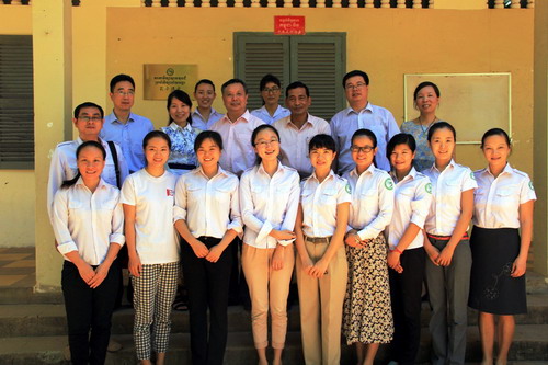 吴哥高中校长任诺特(RIN LOT),吴哥高中孔子课堂负责人肖荣代表柬埔寨王家研究院孔子学院院长谢莫尼勒、中方院长帅式毅热情接待代表团一行,全体15名汉语教师及志愿者参与了座谈会。