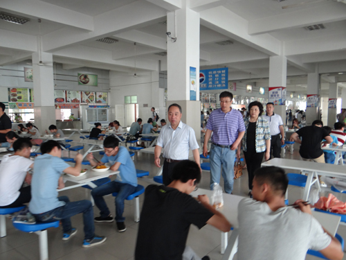 6月18日中午,校长甘筱青、副校长吴桃娥来到学生三食堂检查指导工作,看望昨夜加班的食堂工作人员,并到学生中间了解同学们的情况。后勤管理处处长姜东升随同检查。