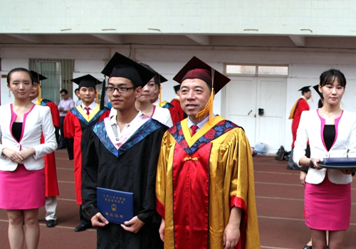 各二级学院领导和机关各部门负责人也分别走入毕业生队伍中,为全体毕业生扶正学位帽,拨转流苏。毕业生满怀激动,逐一快步趋前,向导师深深地鞠躬。整个会场气氛热烈、喜气洋洋,难忘的时刻凝聚在每个同学的笑脸上。