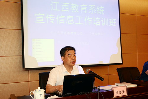 7月2日—3日,省教育厅在南昌航空大学举办全省教育系统新闻宣传工作培训班,集中培训全省高校宣传信息业务骨干,研究部署2015年全省高校宣传思想工作任务。省委教育工委书记黄小华出席并作《贯彻落实 落实中办〔2014〕59号和赣办〔2015〕1号文件精神 开创全省高校宣传思想工作新局面》专题讲座,省教育厅巡视员周金堂主持。全省高校分管宣传工作的校领导、党委宣传部长及宣传信息员,各设区市教育局、省直管县教育局宣传信息员,委厅机关各处室、直属各单位宣传信息员200余人参加。我校副校长杨耀防出席会议,党委宣传部副部长何桂林,党委宣传部文明办副主任吴彭年一同参加了本次培训活动。