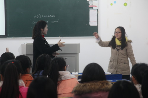 11月27日上午,甘筱青校长来到香远楼412教室,与外国语学院A1411班同学一起听取了张婷娜老师讲授的《中级英语(上)》课程,教务处和外国语学院相关负责人的陪同。