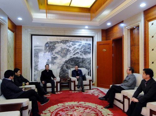 讲座前,甘校长在会客室亲切会见了林加奇,双方进行了友好会谈。