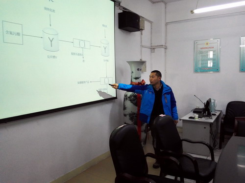 王建国教授和王常清博士代表精细化学品化学研究团队分别做题为“锂电池和动力电池材料碳酸乙烯酯精制的关键技术”和“钽铌冶金废水中氟与钾的回收”的报告;谭景林博士代表环境友好高分子与有机硅材料研究团队做题为“有机硅材料研究进展”的报告;叶志刚博士代表多酸化学与绿色催化研究团队做题为“氟硅表面活性剂的制备及性能研究”的报告;王天烽博士代表废弃物资源化利用研究团队做题为“含固率对污泥厌氧消化及脱水性能的影响”的报告;程鹏飞博士代表环境污染物处理及监测技术研究团队做题为“微藻生物膜贴壁培养及其处理环境废水的初步研究”的报告。汇报结束后,与会人员进行了学术交流,并讨论了中心的建设与发展。