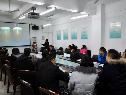 陶副校长最后提出了中心建设的思路:一、明确定位, 在加强基础研究的同时,更加注重服务地方化工企业的技术创新,大力开展横向项目合作。中心的建设应当定位在人才培养、科学研究、服务地方经济。中心要成为办硕士点的依托,成为学生创新创业教育的基地。除了从事基础研究外,主要进行应用研究,申报专利,注重成果转化,服务企业,产生经济效益。二、建好平台,做好保障。中心要利用好现有资金建好平台,做好人才培养、科学研究、服务地方经济的保障。并且要做好中心后期建设的计划。三、加强交流,扩大影响。中心要定期进行学术交流,并形成机制,以促进学科融合,开阔研究思路。中心要加强与工厂和其他学校之间的交流,要敢于出去,要不断地扩大中心的影响。
