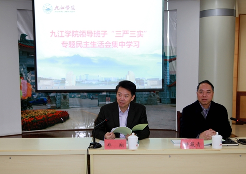 4日上午,学校领导班子“三严三实”专题民主生活会第一阶段的集中学习在行政楼一号会议室进行。校党委书记郑翔主持会议。学校领导班子成员集体学习了习近平论“三严三实”、王岐山的文章《坚持高标准 守信底线 推进全面从严治党制度创新》。会议还传达了《中共江西省委关于加强作风建设营造良好从政环境的意见》,并观看了新时期共产党员优秀代表,以及践行党的群众路线和“三严三实”要求的先进典型的视频:《用生命诠释忠诚——九江市委组织部原副部长高爱红同志先进事迹》。
