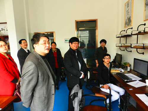 在南湖校区,王副校长首先听取了浔东校区管理办杨晓宁主任对南湖校区科技园入驻、学生宿舍管理、办公设施和条件、校区老干工作等情况的汇报,并深入学生宿舍和科技园进行了实地察看。在视察科技园时,恰巧碰到我校在此实习的学生,王副校长和他们进行了亲切的交谈,勉励他们积极进取,珍惜实习期间的工作机会,积累宝贵的工作经验。