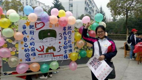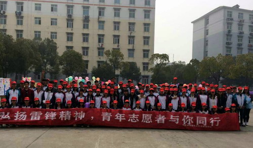 在第17个中国青年志愿者服务日来临之际,校团委组织全校团员青年开展了以“精准关爱 青春同行”为主题的学雷锋志愿服务日活动,3月5日和6日,我校全体志愿者在学校三食堂广场举行了“雷锋日”专题活动。