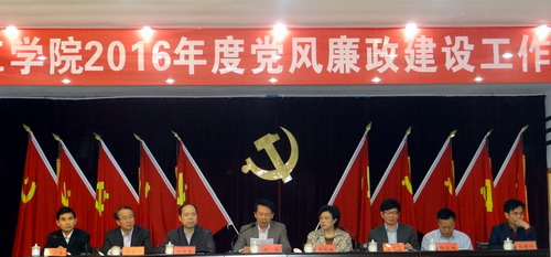4月28日下午,我校2016年度党风廉政建设工作会议在行政楼二号会议室召开。校党委书记郑翔出席会议并作重要讲话,他指出,这次会议召开在省委巡视组进校巡视之后、反馈整改之前,具有特殊的意义,标志着全面从严治党在我校进一步深入展开。校领导班子全体成员,学校副处级以上领导干部、相关处室科级干部和校院两级纪委委员、特邀监察员参加会议。副校长吴桃娥主持会议,校纪委书记魏立平代表学校纪委作了工作报告。