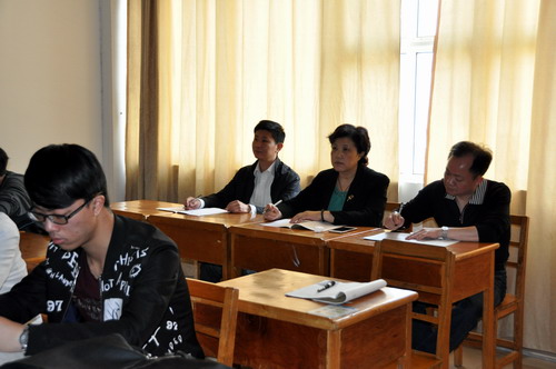 课堂上,吴副校长与同学们一起聚精会神地听课,并做了详细的听课记录。