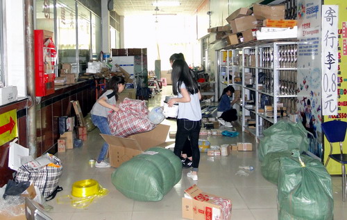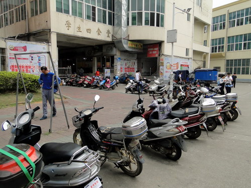 在学生四服务楼二楼,当看到里面的快递公司物品乱堆乱放,部分商家在地面和门上、台阶上贴满了广告时,王副校长要求相关部门加强管理,教育快递公司不要到处堆放物品,商家不要到处张贴广告,影响学校形象。当看到四服务楼下面摆满了摩托车时,王副校长希望保卫部门加强管理,维护校园安全。
