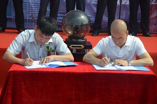 接下来,机材学院党委副书记陈胜才为九江知行汽车服务有限公司黄继华董事长授牌,通过人才培养基地的建设开启了九江学院机材学院与九江知行汽车服务有限公司全面合作坚实的第一步。随后,机材学院副院长李养良分别与九江昌河汽车九江销售分公司总经理殷志坚,九江广汇新运通别克4S店销售总监曾丽华,九江鑫跃汽车销售有限公司总经理张强签订了合作协议。
