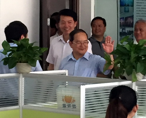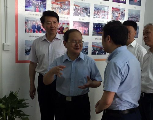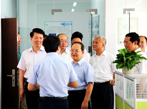 下午二点四十分,鹿心社一行轻车简从,冒着高温抵达我校厚德楼,与迎候在此的校领导一一握手问候。在厚德楼大学科技园一楼大厅,鹿心社省长认真观看了我校大学科技园宣传片,听取了学校领导的介绍;实地考察了科技园入园企业,与入园企业代表交谈,了解了他们的经营情况。目前,我校已经获批省级大学科技园,吸引了68家企业进驻,经营范围涵盖了电子商务与“互联网+”、电子信息技术、智能制造装备开发、新材料开发、精细化学品研发、生物医药研发、文化艺术创意等八大产业;园区面积16927平方米,入驻面积超过10000平方米。