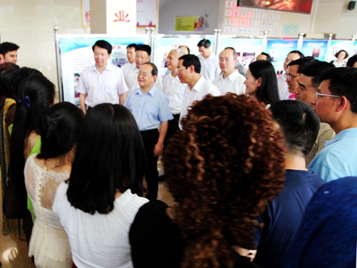 六月的九江学院校园,风轻云淡,鲜花盛开,生机盎然。6月22日下午,雨过天晴,阳光明媚,江西省委副书记、省长鹿心社莅临九江学院,视察九江学院大学科技园,参观国际合作交流展览,并与学校留学生交流。省政府秘书长、办公厅主任张勇,省商务厅厅长王水平,省政府副秘书长犹㼆,省发改委副主任王前虎,省工信委副主任谢光华,省政府研究室副主任利继忠,九江市委书记杨伟东,九江市市长林彬杨等省市相关领导陪同,学校全体在校校领导参加了活动。