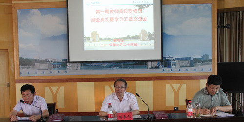 6月23日,学校举行了首期教师高级研修班结业典礼暨学习汇报交流会,陶春元副校长出席典礼,此次研修班的参训教师、学校近两年的新进教师、教师教学发展中心成员等80余人参加了典礼,典礼由教务处马明亮处长主持。