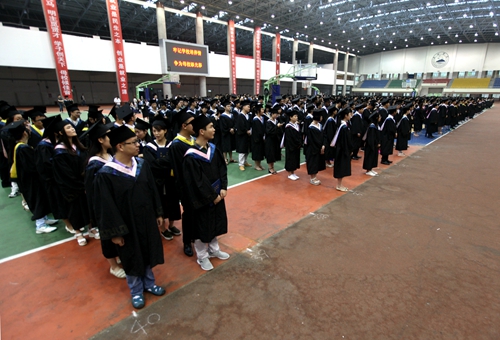 各二级学院领导和机关各部门负责人也分别走入毕业生队伍中,为全体毕业生扶正学位帽,拨转流苏。毕业生满怀激动,逐一快步趋前,向导师深深地鞠躬。整个会场气氛热烈、喜气洋洋,难忘的时刻凝聚在每个同学的笑脸上。