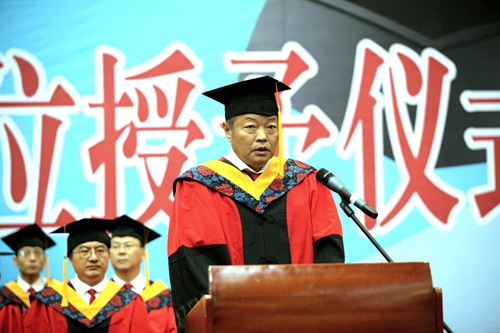 在典礼仪式上,副校长陶春元宣读了我校“2016届毕业生名单”;副校长杨焱林宣读了“关于授予5616名毕业生学士学位的决定”。我校2016届毕业生10712人,其中本科学生5520人,专科学生5192人。