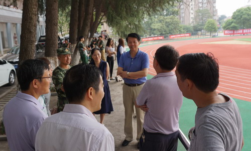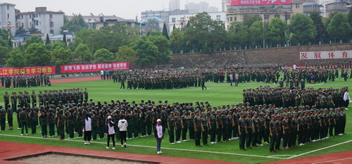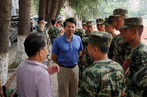 检查完毕后,郑书记又来到浔东田径场,看望慰问正在进行军训的学生、承训教官和军训工作人员,了解新生军训情况。郑书记与教官进行了亲切交谈,向承担本次军训任务的武警部队官兵们表达了诚挚的谢意,并询问了学生军训情况和带训教官的住宿、饮食情况,要求相关部门做好后勤保障,确保军训工作的顺利进行。