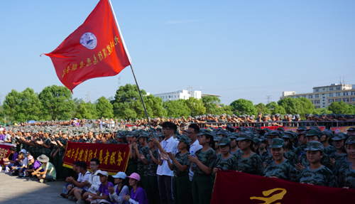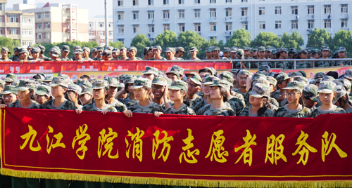 9月13日下午,九江学院2016级新生消防安全教育“进军训”活动在学生宿舍34栋举行,校纪委书记魏立平、九江市消防支队支队长廖圣福、防火处长袁杰、濂溪区消防大队长江猛、教导员刘小敏、消防支队警务科长周波出席活动,保卫处、学生处及部分二级学院负责人以及军训新生3000余人参加活动。