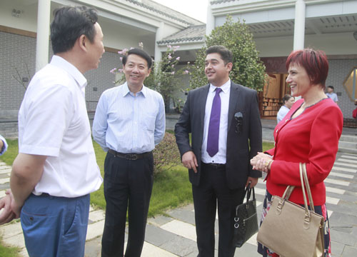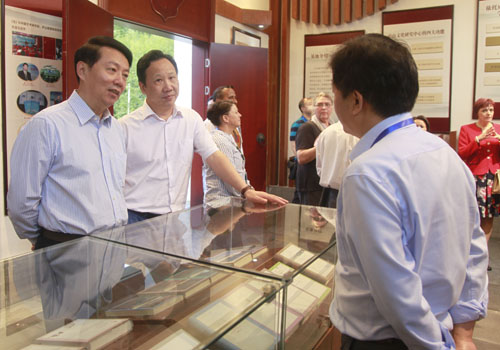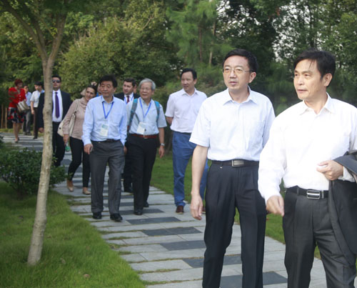 报告会结束后,在校党委书记郑翔,副校长杨耀防的陪同下,与会的中外专家、学者到两南山参观了陶渊明研究院和陈寅恪研究院。