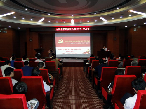 为推进“两学一做”学习教育的深入开展,学习贯彻《中国共产党问责条例》,9月23日下午,学校在逸夫图书馆学术报告厅召开9月份党委中心组(扩大)学习会,专题学习了《中国共产党问责条例》,中共江西省委党校党史党建教研部黄德锋博士应邀作了题为《用担当的行为诠释对党和人民的忠诚——<中国共产党问责条例>解读》的专题辅导讲座。在家校领导、全校副处以上领导干部参加了报告会,报告会由党委书记郑翔主持。