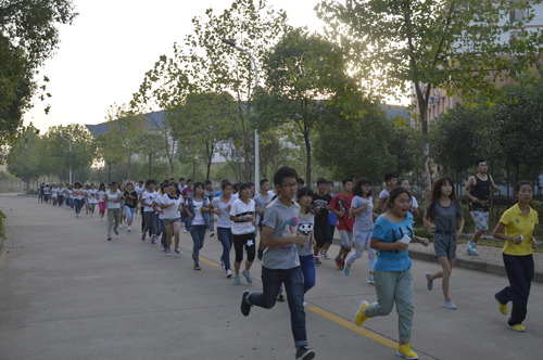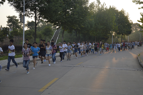 在九江学院校园里,每天清晨,一队队参加早操同学排好整齐的队伍,精神抖擞地向前跑去,他们神清气爽,活力十足,热情奔放,俨然成为校园中最美的一线风景。