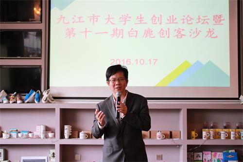 活动开始前,王副校长致欢迎辞。他首先欢迎团市委书记宋晓妤一行参加活动,同时感谢优秀校友王堃董事长来校交流创业经验。王副校长肯定了我校大学科技园的建设发展的显著成绩,通报了大学科技园相继获得了省级大学科技园、省级科技企业孵化器、市级大学生创业孵化基地、九江工商双创直通窗口,正朝着综合双创平台快速迈进。王副校长结合专业和留学经历强调从当下创客创业的必要条件:一是创业平台,学校大学科技园为广大学子提供了很好的创新创业平台,而白鹿创客沙龙则为大家提供了更好的交流创业经验,激荡创业思想的好地方;二是创业导师,在美国有很多成功的创业导师帮助创业者解决困难,学校也已聘请了一批优秀校友和企业家作为创业导师,今后会加大力度培养和聘请更多的创业导师帮助同学们;三是创业风投,国外的天使投资很多,并且很愿意投向青年大学生,随着我国大众创业、万众创新的好形势,许多的风投公司蜂起云涌,还鼓励青年大学生们把握大好机会,借助创业导师的指导,认真学习创业课程、丰富创业经验,打好基础,提高创业成功率。
