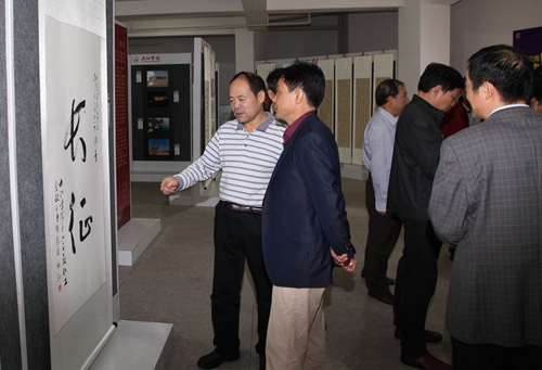 丹青献瑞,翰墨流香,镜像叠彩,歌诗呈祥,好一派升平气象。校领导一行来到逸夫楼书画摄影展览厅。首先进入眼帘是展览前言、“长征”书法作品,“长征”两字是校党委书记郑翔为本次展览所书。接着,是几幅在国内、省内享有盛誉的我校离退休教师的书画作品,郑翔等校领导仔细地观看了这些书画作品,了解了作品及其作者本人的有关情况。郑翔等校领导还一一地观看了其他在职教职工和离退休职工的书画摄影作品,并对本次展览组织工作以及展出的作品给予了充分肯定。郑翔还在现场挥毫敬录毛主席诗句:红军不怕远征难。