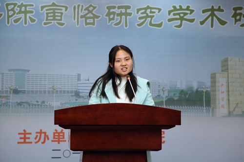 九江学院国学班张子薇同学在开幕式上作了《许我这一生精神独立爱自由》发言。她谈了自己对陈寅恪先生“独立之精神,自由之思想”的理解。认为今日之学子,直面这句“独立之精神,自由之思想”的最好姿态就是——低头坐自己的冰冷板凳,抬头看人世的纷纭万千。并认为,倘若将“低头面对的书本世界”与“抬头面对的万千世界”结合起来,必能拥有“虽千万人吾往矣”之勇气,必能前往“独立之精神,自由之思想”之通衢,造次必于是,颠沛必于是。