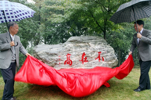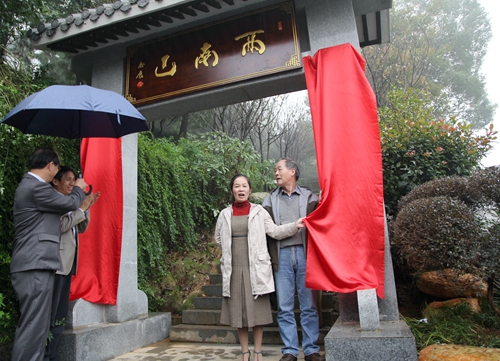 首场报告会结束后,与会专家学者到两南山参观了陈寅恪研究院和陶渊明研究院,并举行了两南山山门对联和“不在高”石刻揭幕仪式。仪式由九江学院副校长陶春元主持,河南大学党委书记关爱和、九江学院副校长陶春元与陈氏后人陈贻竹、许郁葱共同为两南山山门对联揭幕。原江西省科技厅厅长李国强和九江学院党委书记郑翔为“不在高”石刻揭幕。