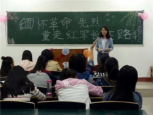 传承红色基因,与日常教学、生活、工作相融合。今年围绕纪念红军长征胜利80周年主题活动中,结合“两学一做”学习教育的要求,党委宣传部、校团委、校学生工作部、校工会、艺术学院等部门组织开展了教职工书画摄影联展,红军长征知识竞赛,歌咏比赛活动,重走长征路,环校园长跑等活动,坚持让传承红色基因与日常相结合,与教学科研相结合,与校园育人相结合。发扬红军长征精神 ,军训育人成果显著,军训与长征精神相契合,鼓舞新生坚持不懈,强健体魄,健全人格;此外还有濂溪讲坛开启纪念红军长征胜利80周年系列活动,领略毛泽东的伟人风采与非凡气度,感悟长征的波澜壮阔与精神价值;2016年江西省高雅艺术重温红色经典,传承革命精神进校园活动专场演出在我校举行,高雅艺术与红军精神相融合,让长征精神世代相传。
