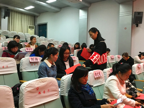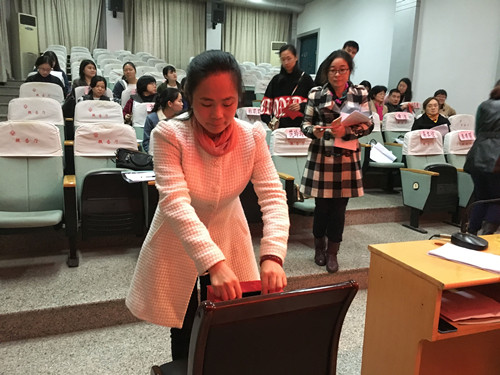 党员大会结束后,护理学院新一届党委随即在报告厅召开了第一次全体会议,通过投票选举,选举丁蓉同志为新一届中共九江学院护理学院委员会书记,丁书记当选后作了表态性发言,并明确了新一届党委委员分工。