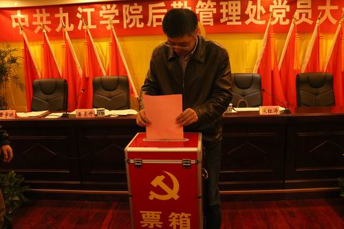 大会还通过了委员候选人名单及总监票人、监票人名单,指定了计票人。根据《中共九江学院后勤管理处党员大会选举办法》,大会以无记名差额选举的方式,经过全体党员投票,选举产生了新一届中共九江学院后勤管理处委员会委员(以姓氏笔画为序):李刚、张红涛、胡亮、姜东升、黄宇晓、曾海波、蔡飞。