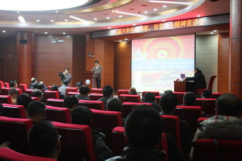 为全面深入宣传党的十八届六中全会、省第十四次党代会、市第十一次党代会精神,统一广大干部群众的思想、行动,按照中央、省委、市委有关文件精神,12月5日,我校在逸夫图书馆学术报告厅召开了精神宣讲会。在家校领导纪岗昌、王万山、杨焱林出席,校纪委书记魏立平主持宣讲会,全校副处以上领导干部参加宣讲会。