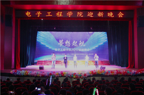 梦想启航,激情飞扬,12月7日晚,电子工程学院在学校大礼堂隆重举行2016级新生迎新晚会。副校长纪岗昌、校团委闫来英书记、电子工程学院院长高小英、党委书记孙小明、副院长胡日新和全院师生一起兴致勃勃地观看了演出。