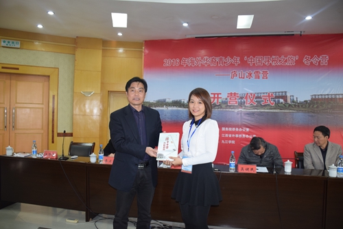 九江市外侨办副主任胡丽华在致辞中,向大家介绍了九江的地理状况、历史文化和人文风情,并表示此次冬令营日程安排十分丰富,不仅有书法、剪纸等文化课程的安排,更组织有浔阳楼、白鹿洞、庐山等著名景点的亲地游览,希望营员们能够通过接下来的旅程更加深入地了解当地的地域文化,感受中国优秀传统文化的无穷魅力。