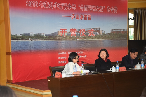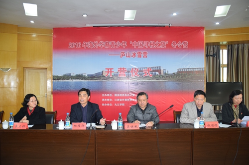 12月7日下午,由国务院侨务办公室主办,江西省外事侨务办公室承办,九江学院协办的“2016年海外华裔青少年‘中国寻根之旅’冬令营——庐山冰雪营开营仪式”在九江学院隆重举行。江西省外侨办巡视员吴健民、江西省外侨办侨务处处长李卫红、国内侨务处副调研员钱熠德、九江市外侨办副主任胡丽华、九江学院副校长杨耀防、九江学院国际合作交流处副处长王贤淼,与来自马来西亚、印度尼西亚、泰国的共87名营员及领队老师一同出席了开营仪式,仪式由王贤淼主持。