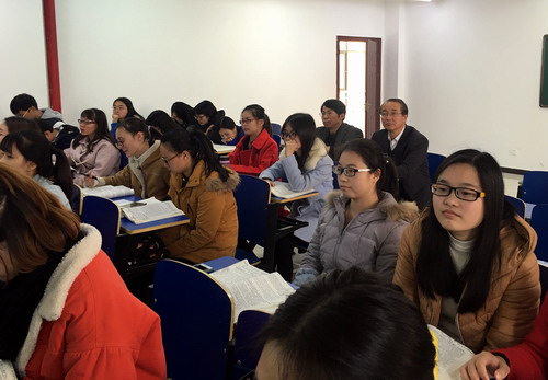 12月9日下午,陶春元副校长来到八里湖校区综合楼415教室,听取了韩守莹老师为政法A1411、A1412班讲授的《国际经济法》课程,政法学院院长詹建志一同听课。