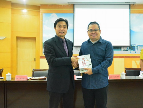 随后,冬令营和文化体验团领队赠送九江学院纪念品。杨耀防副校长特地向三位领队老师赠送了《游学中国最美30县》一书。最后学校领导和相关部门负责人与冬令营和体验团成员一起合影留念。
