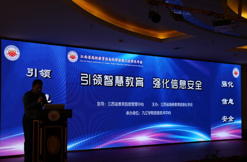 12月23-24日,由我校信息技术中心承办的江西省高校教育信息化学会第三次学术年会在校举行,教育部教育信息化专家组秘书长、华东师范大学党委常务副书记任友群教授,中国高等教育学会教育信息化分会副理事长、复旦大学信息办主任宓詠教授,江西省高校教育信息化学会理事长、南昌大学原副校长李建民教授等领导和专家,以及来自全省62所高校和30余家企业会员的250余名嘉宾莅会,九江学院副校长纪岗昌教授和江西省教育信息管理中心主任徐峰教授出席开幕式并致辞,高朋满座,共襄盛举。开幕式由学会副秘书长、九江学院信息中心副主任舒长兴主持。