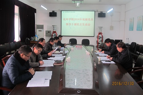 12月30日上午,化环学院在向学楼五楼会议室召开2016年处级党员领导干部民主生活会,夏启国副校长在组织人事部副部长燕红波的陪同下参加了会议,会议由学院党委书记刘新强主持。