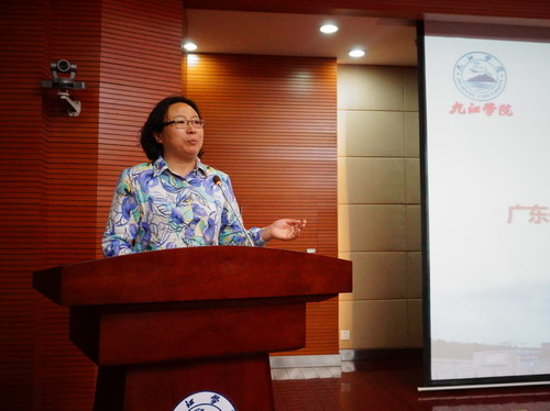 韶关丹霞山管委会副主任、丹霞山国家自然保护区管理局副局长陈昉作了讲话。她说,今天“中国丹霞”进校园系列科普讲座九江学院站正式启动,衷心感谢九江学院的领导和全体师生员工的大力支持,并向他们致以诚挚的问候。丹霞地貌的研究自上世纪20年代,历经中国四代地学人的努力,逐步形成完整的科学体系。广东丹霞山就是最重要的丹霞地貌命名地和研究基地。丹霞山一直致力与丹霞山的保护与利用,大力推动丹霞地貌的科研科普,与国内外诸多高校、科研机构以及专家学者建立广泛联系,成为国内地学、旅游、生物、文化、乡村等多个学科的科研、实习及教学基地。经过认真磋商、积极筹措、反复调研,九江学院和丹霞山将签订合作协议,此次协议的签订,必将进一步促进学校人才培养、科技研发和技术创新,进而实现双方资源共享、互惠互赢,同时也相信我们的合作必将收获丰硕的成果。